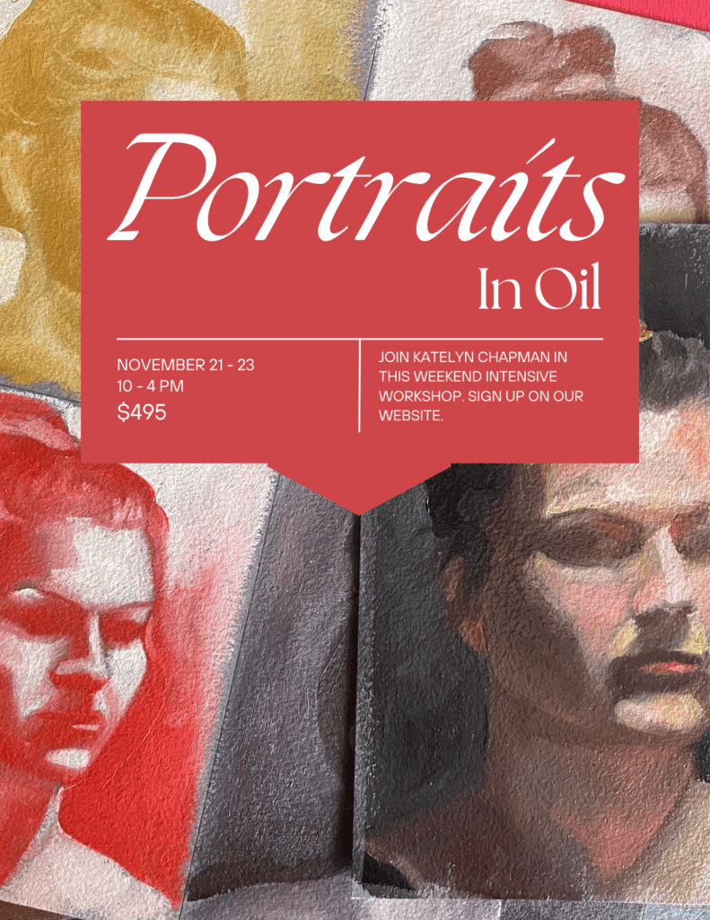 Upcoming Events HOLIDAY BLOCK PRINTINGHOLIDAY BLOCK PRINTINGMonday, Dec 1 6 - 9 PM $65 Read More Portraits in OilPortraits in OilNovember 21-23 10-4PM $495 Read More Stitch & StowStitch & StowSaturday, Nov 22 10 - 1 PM $98 Read More